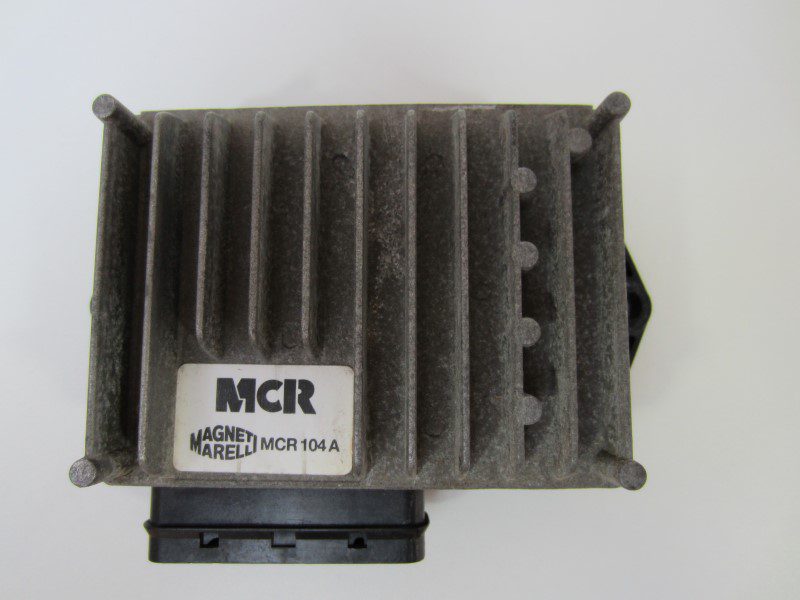 Computer per il controllo dell’accensione elettronica per Fiat Tempra T.D. dal 1993. Riguarda un’unità del produttore Magneti Marelli denominato MCR 104A. L’armadio ha un alloggiamento in alluminio con alette di raffreddamento ed è dotato di una connessione a 11 pin per il controllo l’infiammazione.