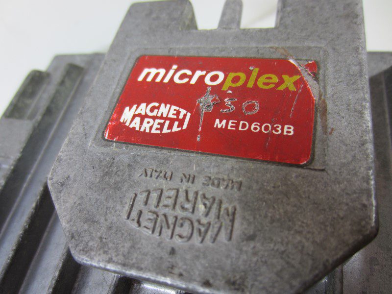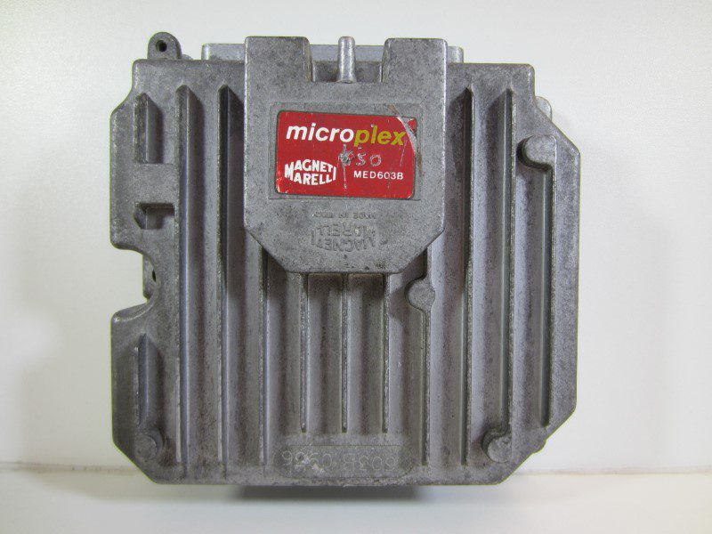 Computer per il controllo dell’accensione elettronica per Fiat Uno Turbo equipaggiata con motore 1.4 turbo benzina costruito nel 1987. Riguarda un’unità del produttore Magneti Marelli denominata Microplex. La scatola ha un alloggiamento in alluminio con alette di raffreddamento ed è dotata di una connessione a 11 pin per controllare l’accensione. L’armadio è montato con tre bulloni. Iscrizione sull’adesivo su questa unità: Magneti Marelli Microplex MED603B 0936 Numero OEM Fiat 7548023
