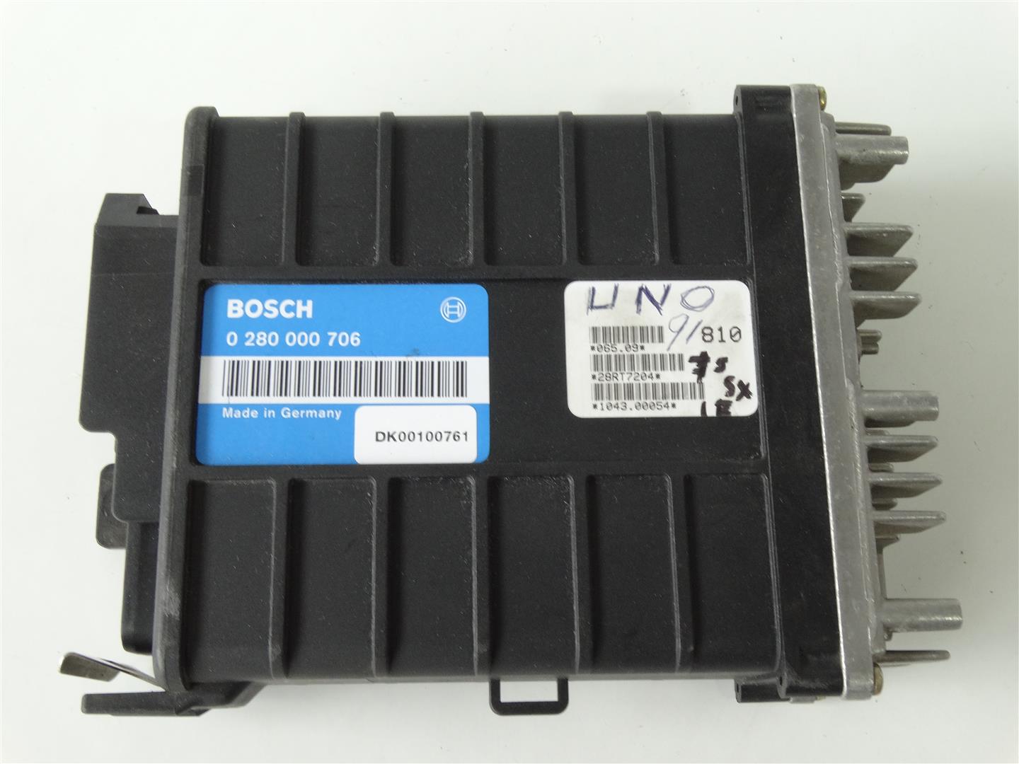 Computer di gestione motore ECU per il controllo di iniezione, accensione e controllo minimo per Fiat Uno con motore a benzina da 75 UI. Questo è un blocco da 1,5 litri. L’unità funziona bene e proviene da una Uno del 1991 in versione SX. Il modulo Bosch è una scatola di plastica nera con quattro fori per bulloni, vano di raffreddamento in alluminio e una spina multipolare. Iscrizioni sull’unità: Bosch 0 280 000 706 Prodotto in Germania 065.09 Versione software 28RT7204 1043.00054 Numero OEM Fiat 7555125