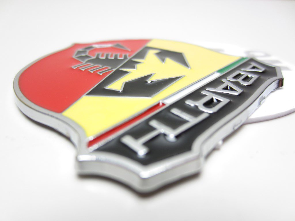 Logo Abarth per portellone Fiat Stilo -NUOVO- imitazione – Si tratta di un nuovo logo Abarth in metallo con smalto rosso e giallo da posizionare sul portellone posteriore per Fiat Stilo Abarth.