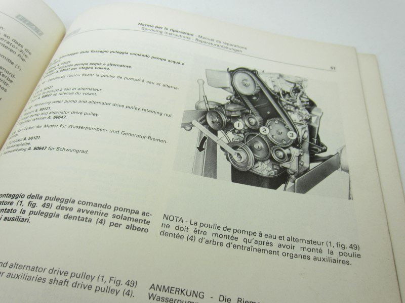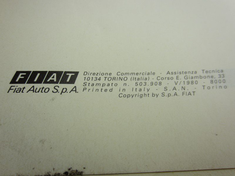 Manuale d’officina usato per la manutenzione del motore diesel 1700 della Fiat. Edizione originale di Fiat car SPA. È un’edizione del 1980.