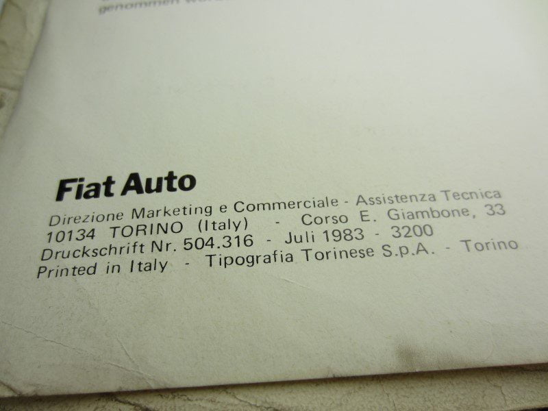 Manuale d’officina Fiat Regata – Tedesco – Manuale d’officina usato per la manutenzione di Fiat Ragata.