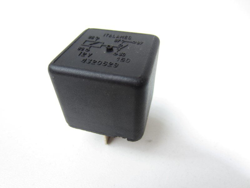 Relè quadrato nero a 5 poli per illuminazione e clacson. Questo relè è stato utilizzato in molti tipi diversi di Lancia Alfa e Fiat, tra cui la Lancia Delta HF integrale 8V e 16V. La Lancia Thema I e l’Alfa Romeo GTV. Fiat Tempra, Fiat Coupé.