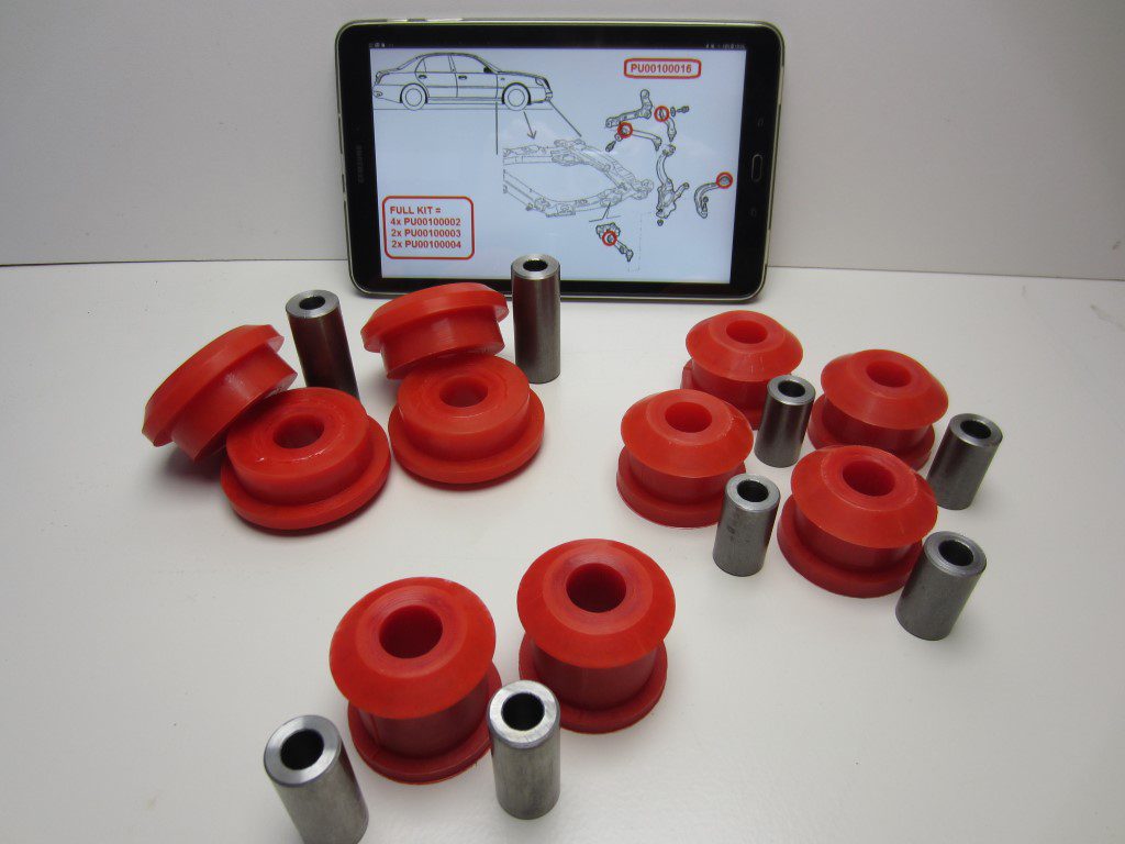 Set completo sospensioni anteriori in poliuretano Lancia Thesis (set di 8) – Set completo composto da 8 boccole in poliuretano in sostituzione delle boccole originali in gomma per la sospensione anteriore per Lancia Thesis.NON DISPONIBILE Ritiro completo