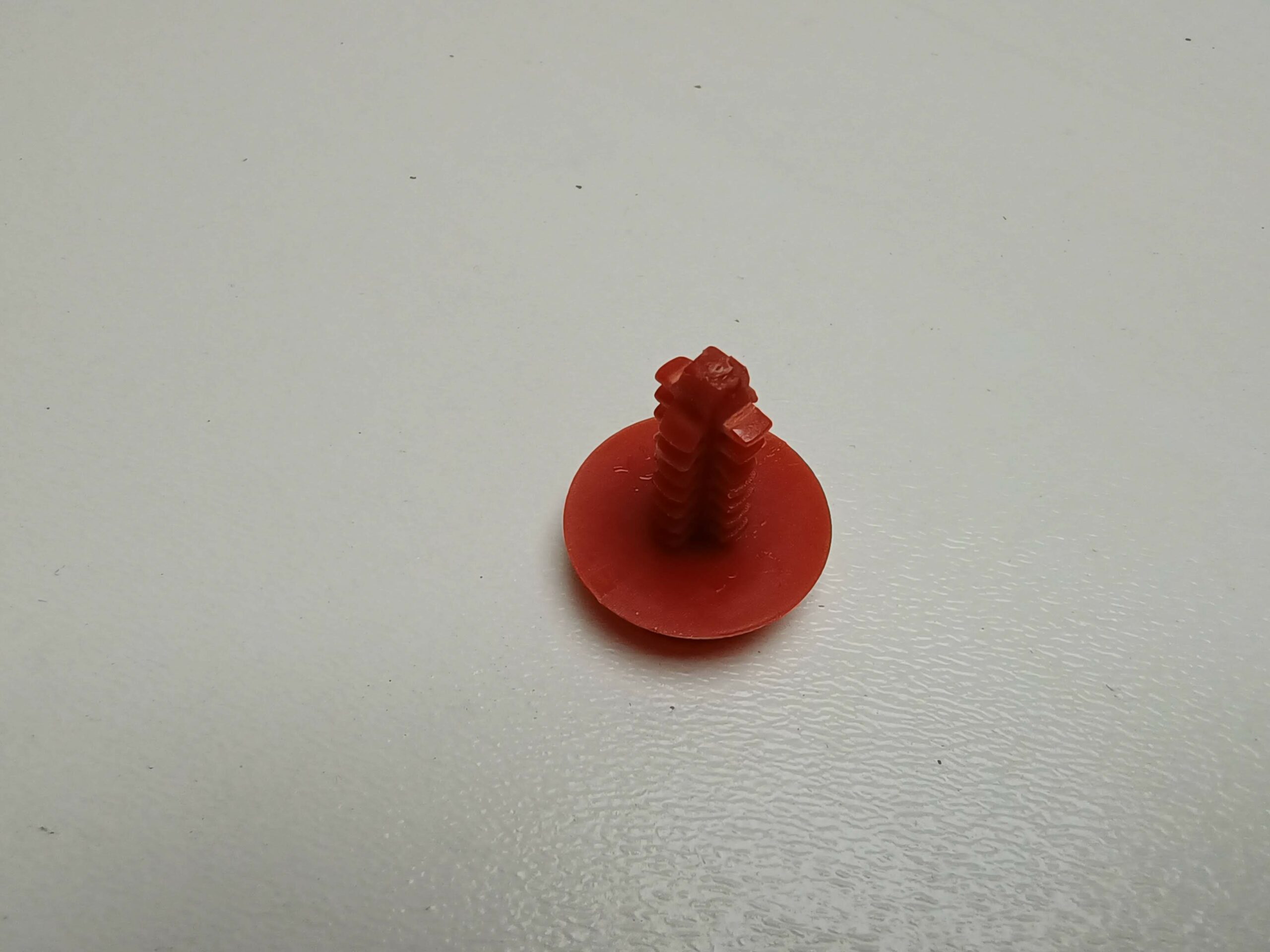 7739801 Gebruikte rode kunststof kerstboom clip voor het bevestigen van het deurpaneel aan het portier.