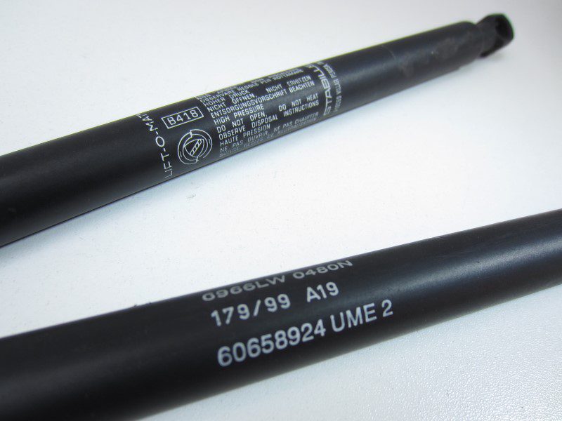 Set van 2 gasveren voor de motorkap van een Alfa Romeo 166. De gasveren zijn goed werkend, hebben nog de juiste werkdruk om de motorkap moeiteloos te openen en vertonen geen lekkage.