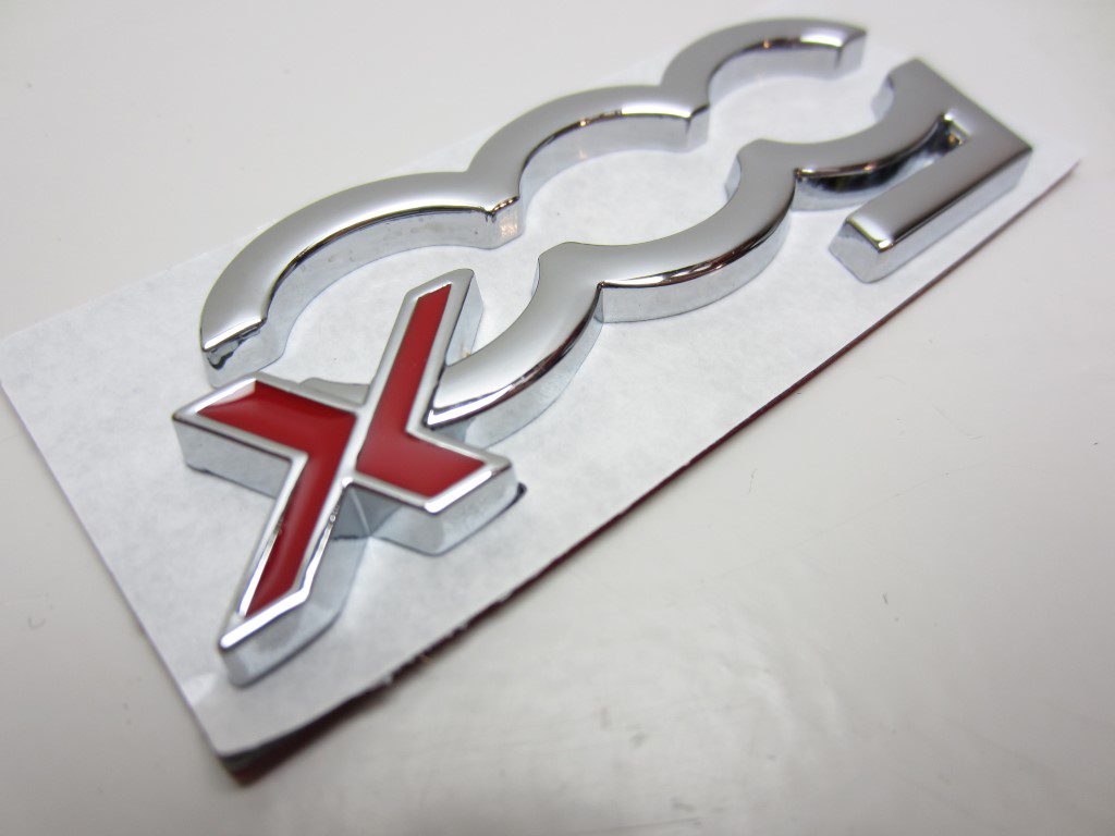 Nieuw chromen 500X logo. Dit logo is een aftermarket productie. Het is een metalen badge, zware kwaliteit! Echt een heel mooie badge die lang zal meegaan. De maatvoering wijkt af van het originele logo op de chromen lijst op de achterklep van de 500X! Kan dus niet uitgewisseld worden! Zelfklevend voorzien van 3M tape. Geschikt voor plaatsing op een vlakke ondergrond.