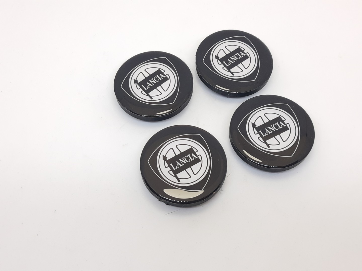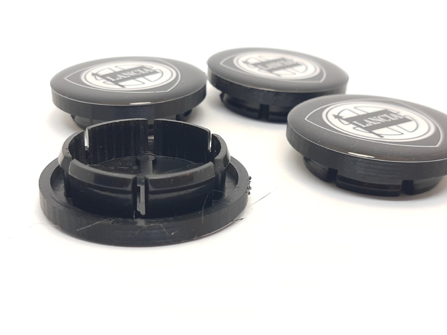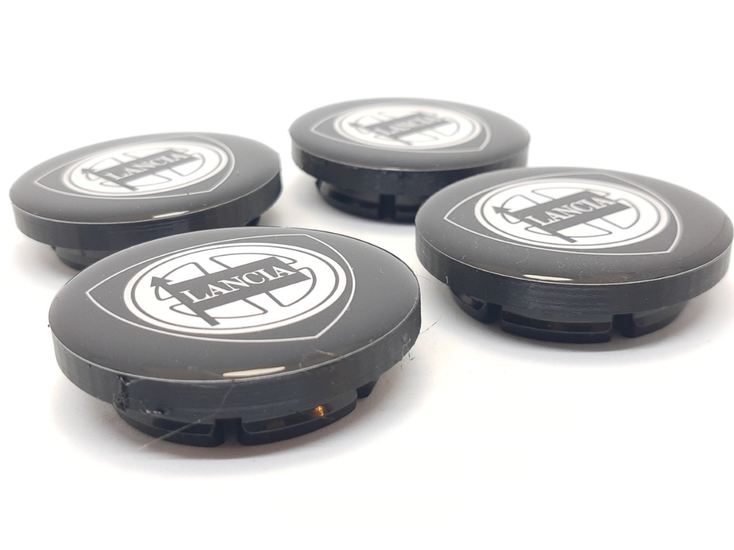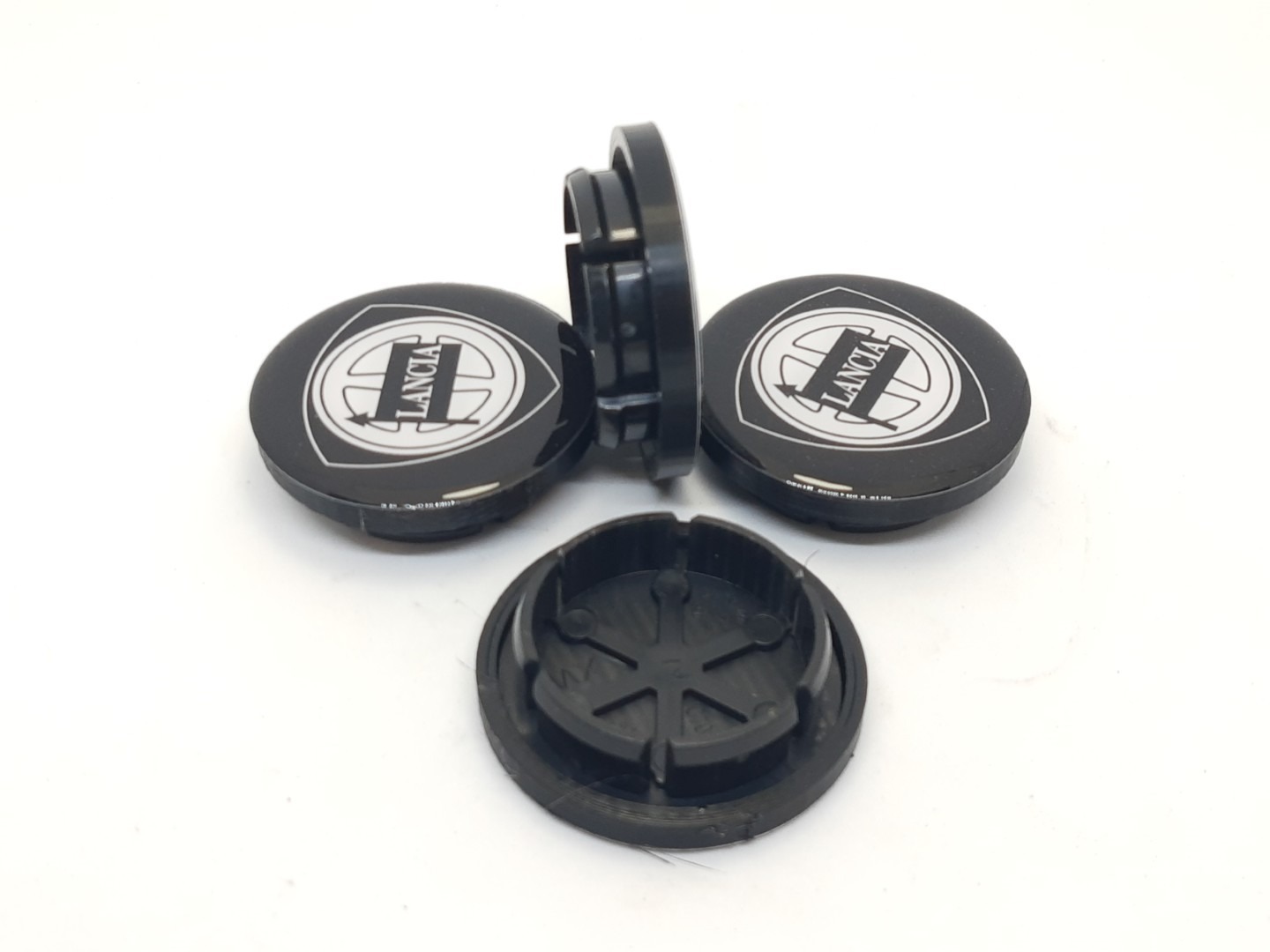 Wielcenter dikke rand zwart logo Lancia Delta Integrale (set 4 st.) – Set van 4 nieuwe Reproductie wielcenters voor Lancia Delta Integrale.Wielcenter flush zwart logo Lancia Delta Integrale (set 4 st.) -REPRODUCTIE-