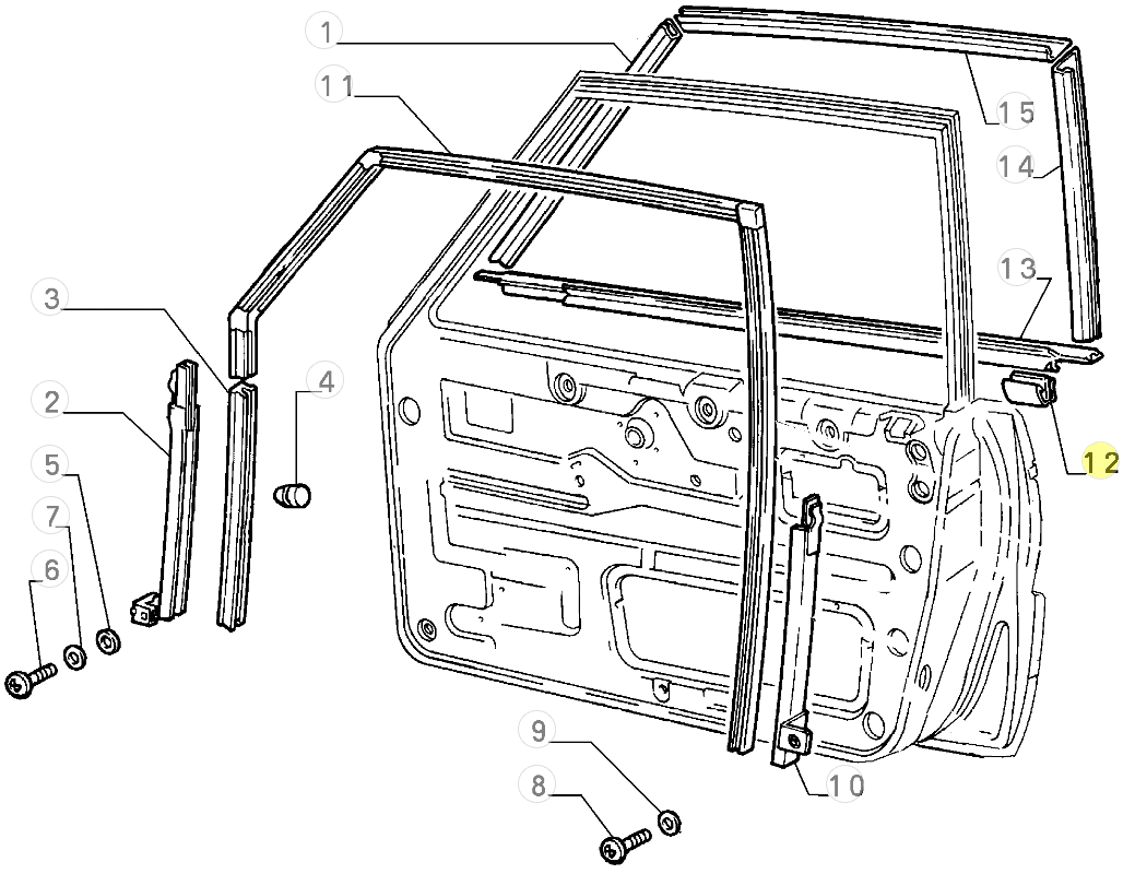 Nieuwe imitatie raamclip voor montage aan het portier. De clips zorgen voor een montage van de raamschraper in de opening tussen raam en buitenzijde portier. Deze clip is in zwart uitgevoerd in plaats van het gebruikelijke wit, functioneert verder hetzelfde en de clip is na montage onzichtbaar dus doet geen afbreuk aan de originele look. Imitatie onderdeel van hoge kwaliteit 16 stuks per auto nodig. 4 per portier. Links en Rechts, voor en achter toepasbaar. Onderdeelnummer 12 op de technische tekening uit EPER tekening nummer 6B79F82E522AB58EE225D945B5592FC1 mbt de toepassing op de Lancia Delta Integrale. Per auto is van dit artikel 8 stuks benodigd. Geschikt voor alle typen Delta 831, van 1.1 carburateur uitvoering tot en met de Integrale EVO. OEM Lancia 82376262
