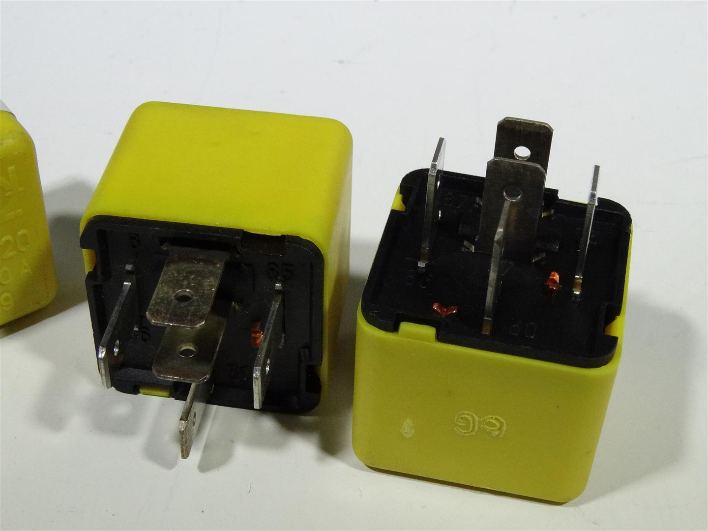 Relais 5-polig Geel achterruitverwarming, grootlicht Lancia Delta e.2 Alfa 156 – Geel 30 ampère relais voor inschakeling grootlicht en achterruitverwarming van de Lancia Delta van het 2e type.Relais 30 Ampere Geel Lancia Delta e.2 Alfa 156 – Geel 3