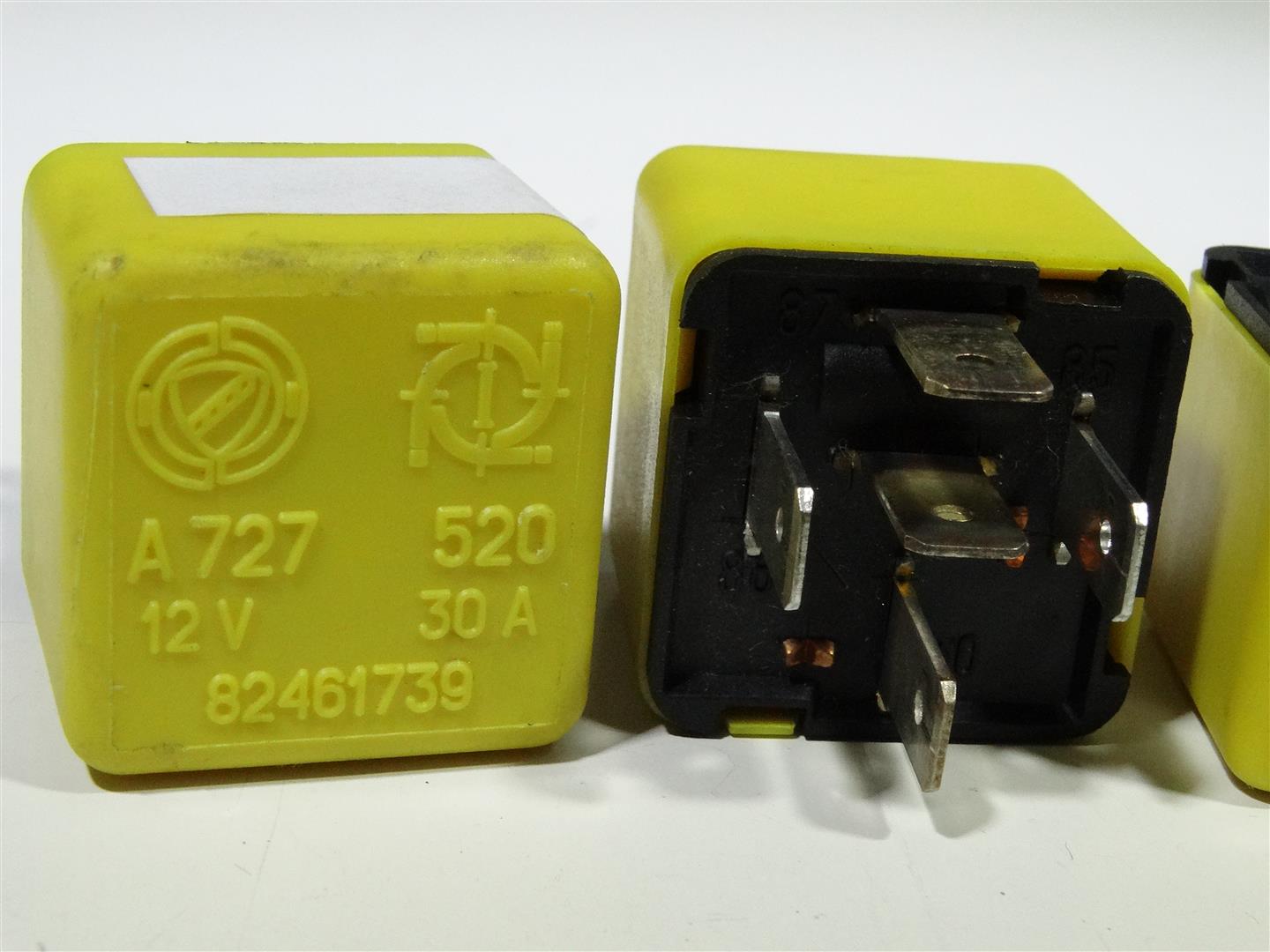 zeGeel 30 ampere relais voor inschakeling grootlicht en achterruitverwarming van de Lancia Delta van het 2e type. De bouwjaren van deze auto liggen tussen 1993 en 2000. Dit type relais is ook toegepast op Alfa Romeo 156. Twee van dit type relais zijn geplaatst op de achterzijde van de zekeringkast in het interieur. Ook toegepast op de Lancia Delta HF integrale 8V en 16V modellen in de zekeringkast onder het dasboard aan de bestuurderzijde. Het betreft het middelste relais. Nummer 10 op technische tekening 46B56B1A8B590736F0FFCA9B0449D544 Nummer 13 op technische tekening 1040900001 Tevens te gebruiken voor Lancia Kappa en lancia Thema I en Lancia Lybra. Opschriften op het relais zijn A727 520 12V 30A OEM nummer Lancia82461739