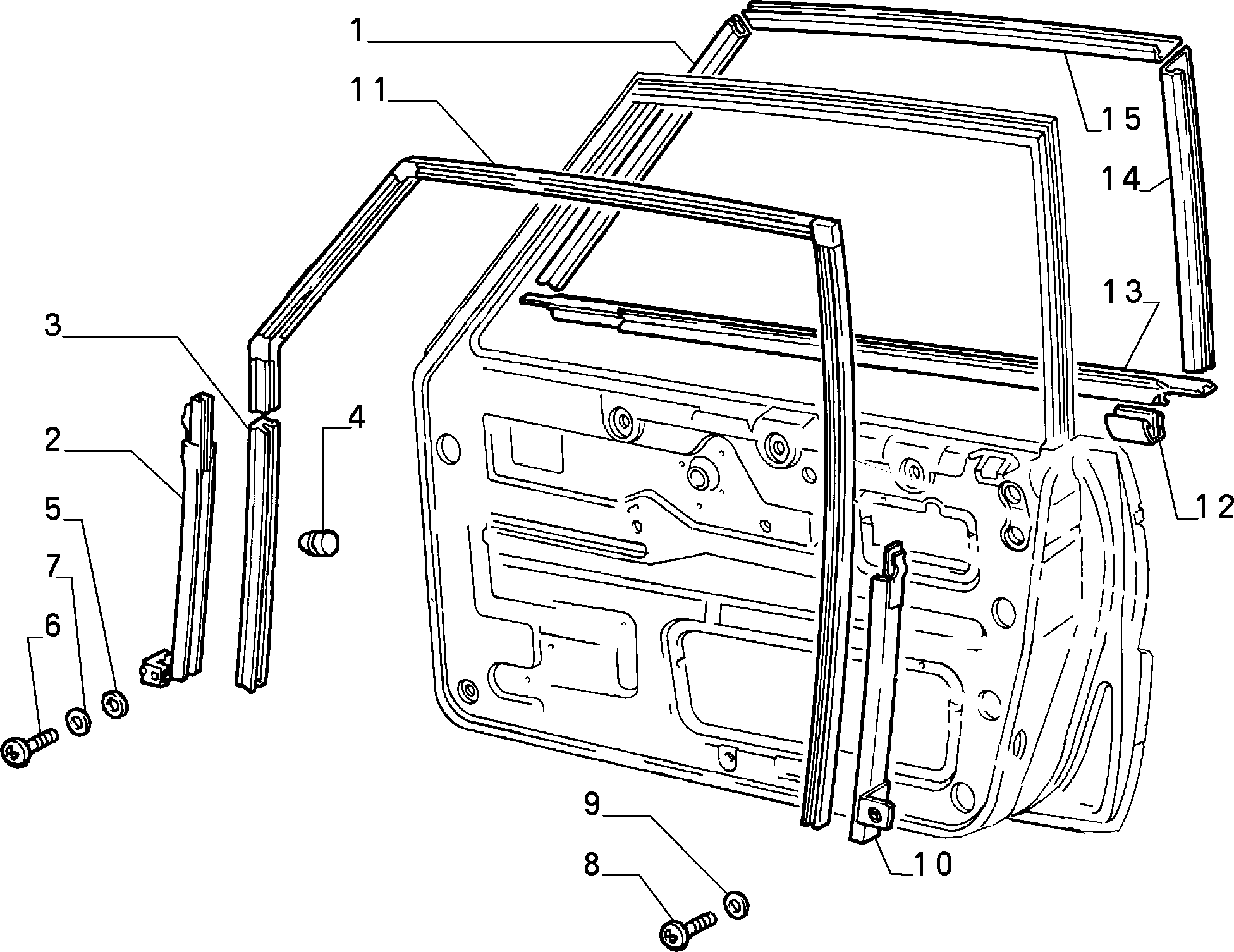 Schroef ruit geleider voorportieren L+R Lancia Delta Integrale