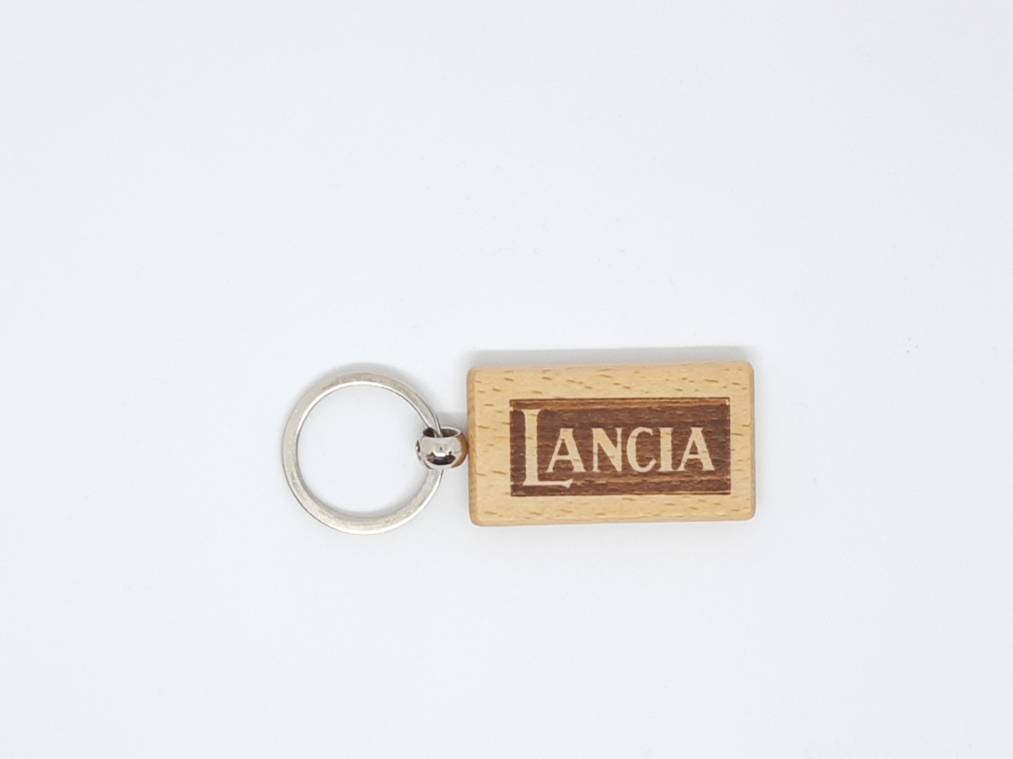 “Nieuw imitatie onderdeel. Rechthoekige sleutelhanger van hout voorzien van lasergravure van het Lancia tekst logo van de jaren ’70. Tweezijdig gelaserd, dus aan beide kanten zit het logo! Het betreft een handgemaakt product. De gravure zit niet altijd volledig gecentreerd en er kan wat variatie zitten in de diepte van de gravure. Erg geschikt voor eigenaren van een Lancia Fulvia een Lancia Flavia of een Lancia Beta bijvoorbeeld.”